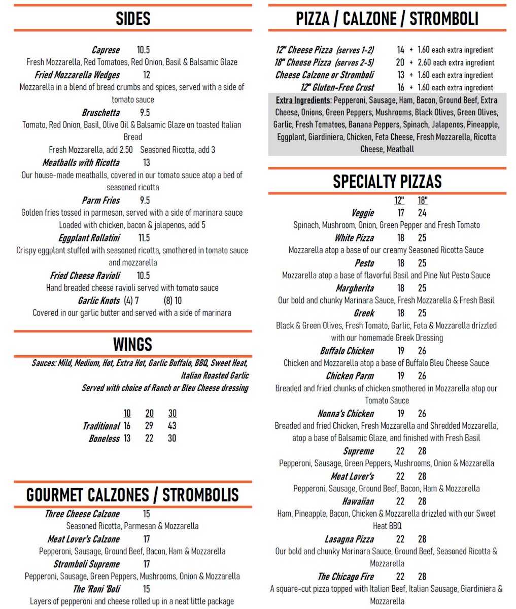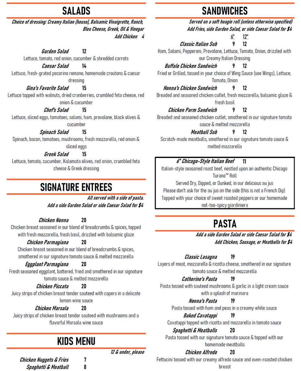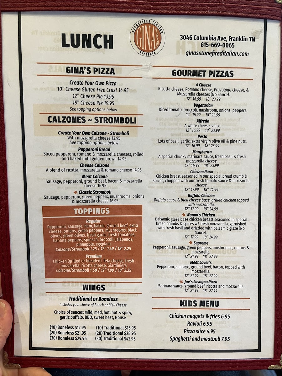 Introducing the Menu at Gina's Stonefired Italian Pizzeria